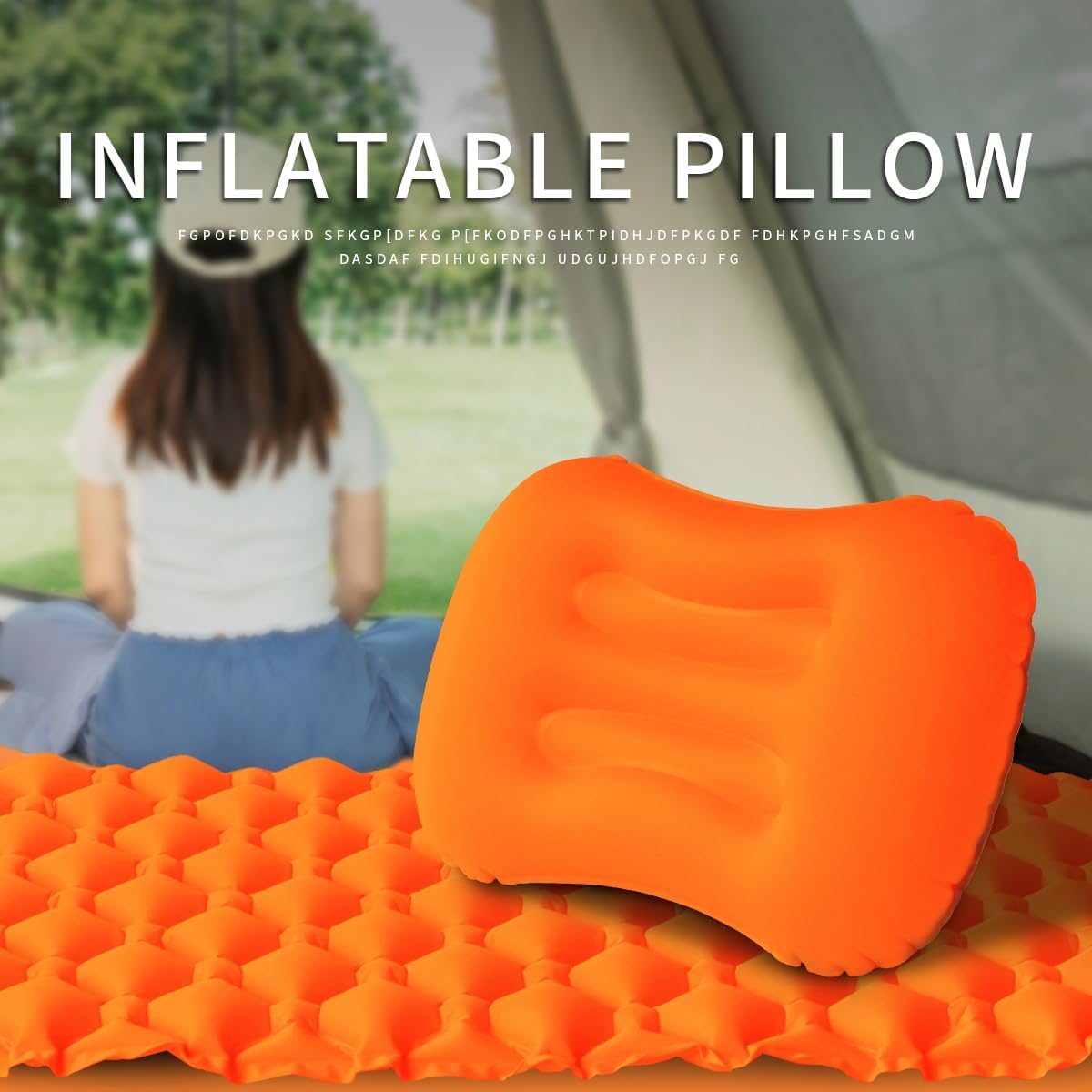 Ultralight Inflatable Camping Pillows for Adults, Compressible Compact Travel Inflatable Pillow, Comfortable Ergonomic Blow Up Air Pillow for Camping, Hiking, Beach(orange)