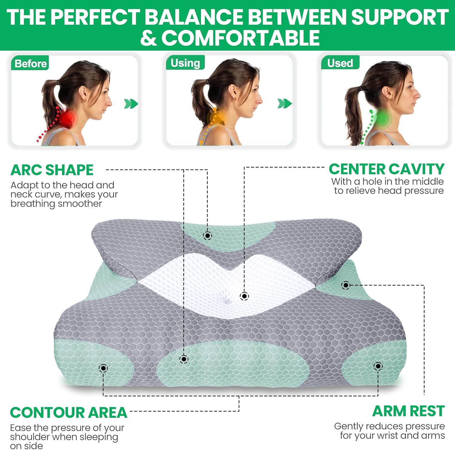 【2 HEIGHTS AND ARMREST DESIGNS】If you end up nonetheless troubled about not discovering the suitable peak pillow. our orthopedic pillow has 2 completely different heights on both aspect, so you may select whichever works higher in your sleep posture. And there are particular grooves that permits your arms to go beneath for comfy sleep. This pillow for neck ache reduction is appropriate for every kind of sleeping posture,resembling abdomen ,again ,aspect sleeping.