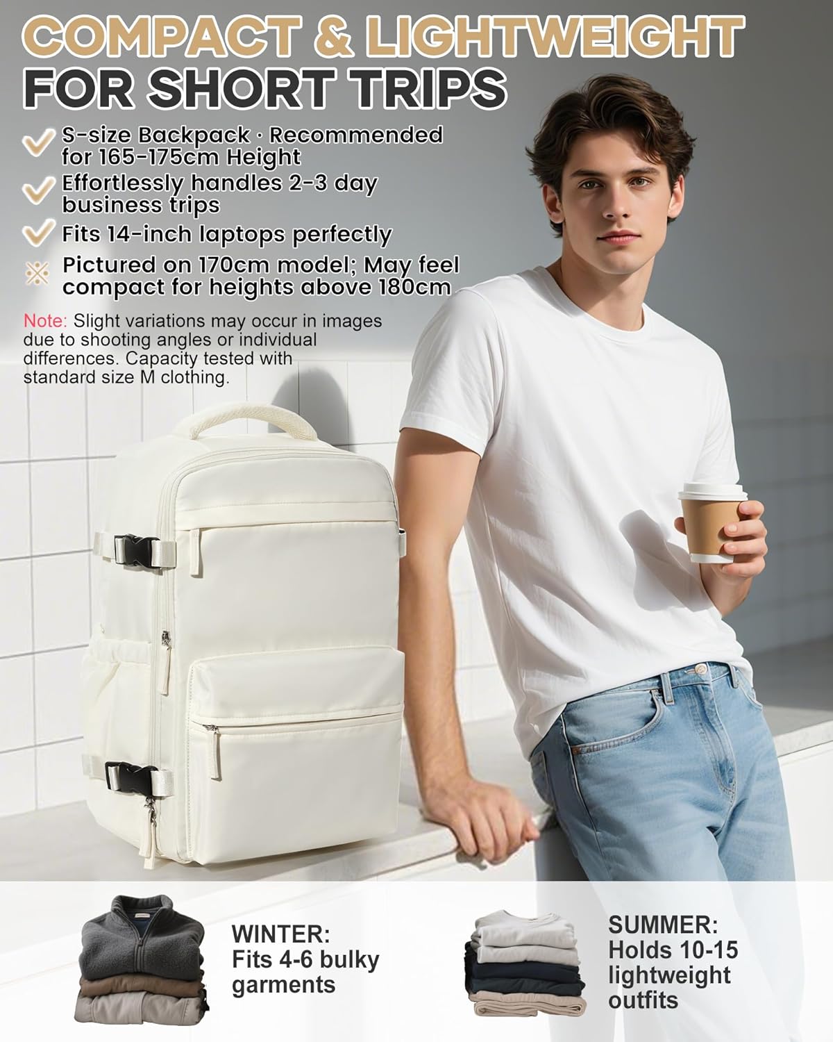 Vacuum Travel Backpack for Women, Cabin Bags 40x20x25 for Ryanair, Travel Hand Luggage Backpack Carry-ons Bag with Vacuum Compression Beige