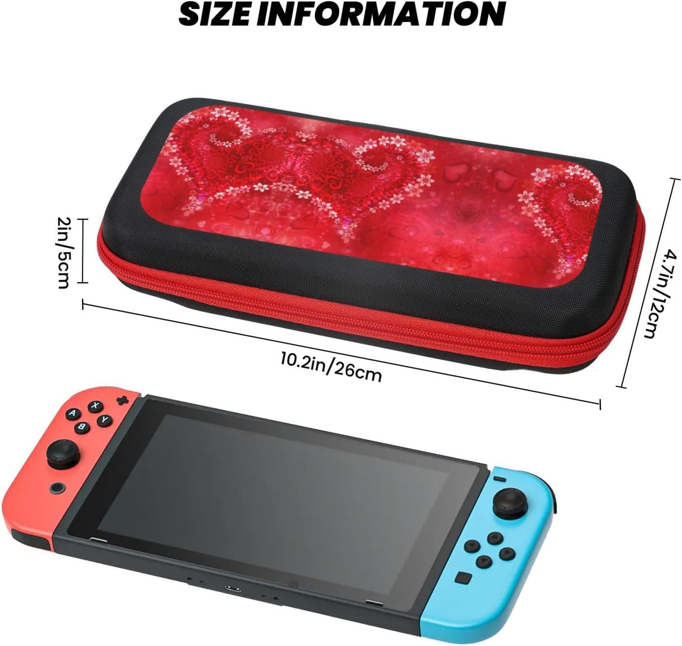 Dimensions: Measuring 4.7in x 10.2in x 1.9in (12cm x 26cm x 5cm), thisValentine’s Day Crimson Coronary heart Flower Print change carrying case is designed to suit your Swap and its equipment.