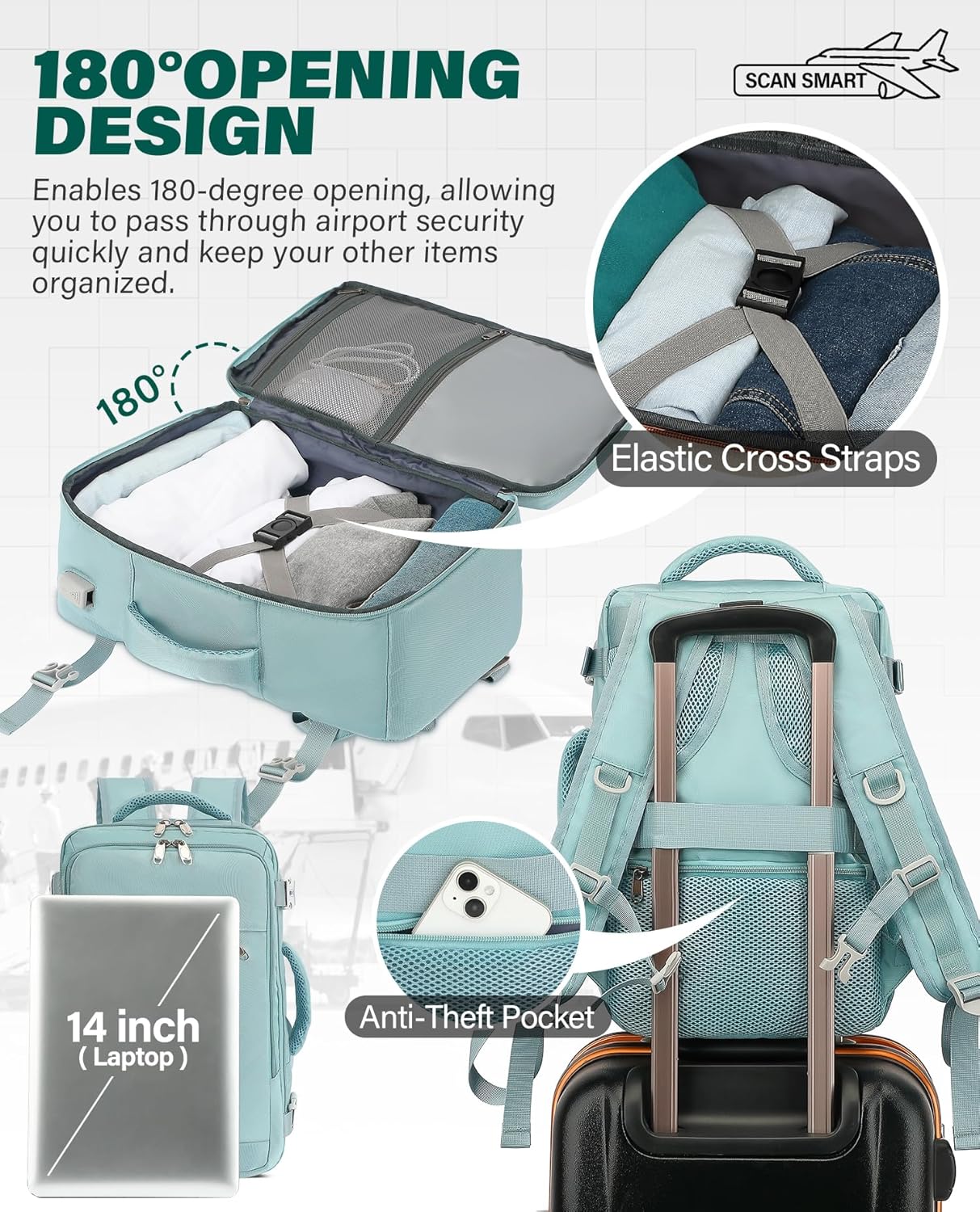 【TSA Permitted & Hold Secure】Our backpack comes geared up with a TSA accepted design that permits you to simply unfold it 90-180 levels for fast passage by way of airport safety. It additionally features a baggage strap for straightforward attachment to your suitcase and a anti theft pocket to maintain your belongings secure, excellent for worldwide journey and day journeys.