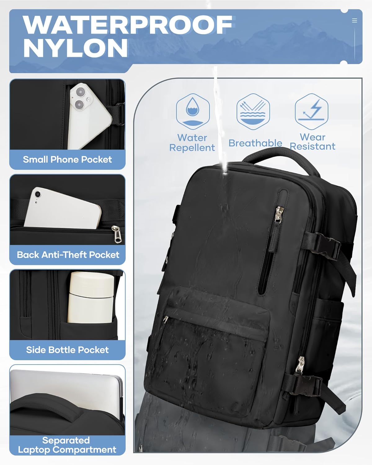【Light-weight & Sturdy Materials】Crafted from premium nylon with bolstered stitching, our compression backpack resists tears, abrasions, and surprising snags throughout journey. The hermetic seals lock out moisture, mud, and odors—protecting contents recent and dry even in humid climates. Regardless of its rugged sturdiness, the bag weighs beneath 2.1lb (0.96kg). The water resistant coating provides an additional layer of safety towards spills and rain, excellent for journey journey and day by day commutes.
