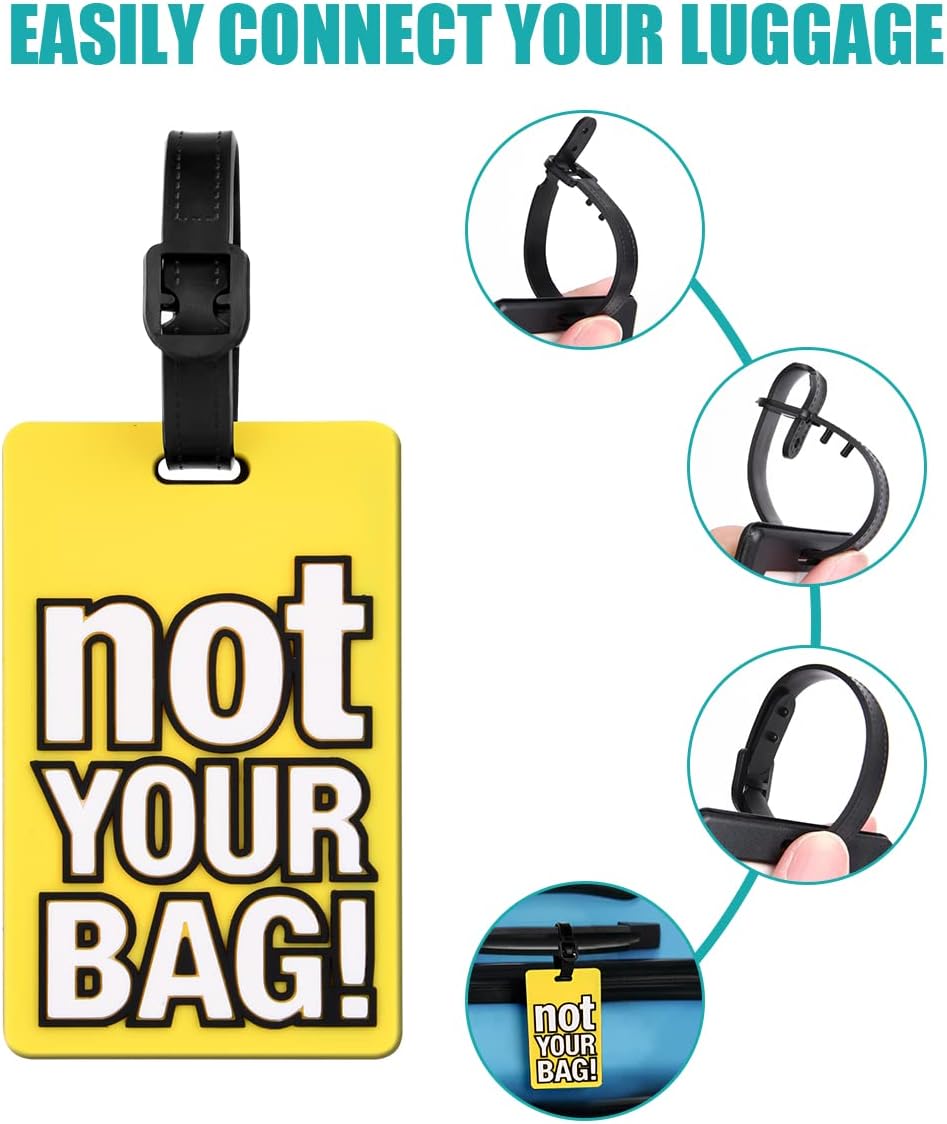 ✈【Fascinating Textual content Printing】 Suitcase baggage tags are brightly coloured, with some fascinating phrases on the label, reminiscent of “Not your bag!”, in massive and simply recognizable fonts, making your bag stand out and simple to establish.