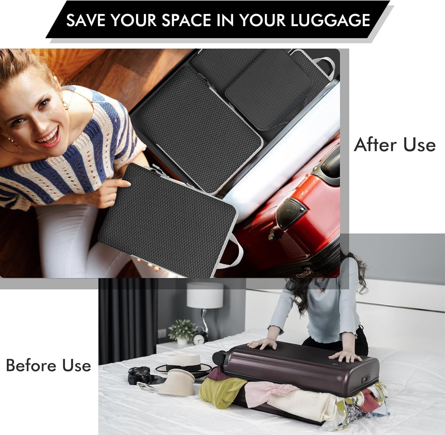 Vmglgig Compression Packing Cubes for Suitcases, 5 Pack Expandable Travel Packing Organizers Compression Cubes for Travel Essentials Waterproof Packing Cubes, Luggage Organiser Bags (Black)