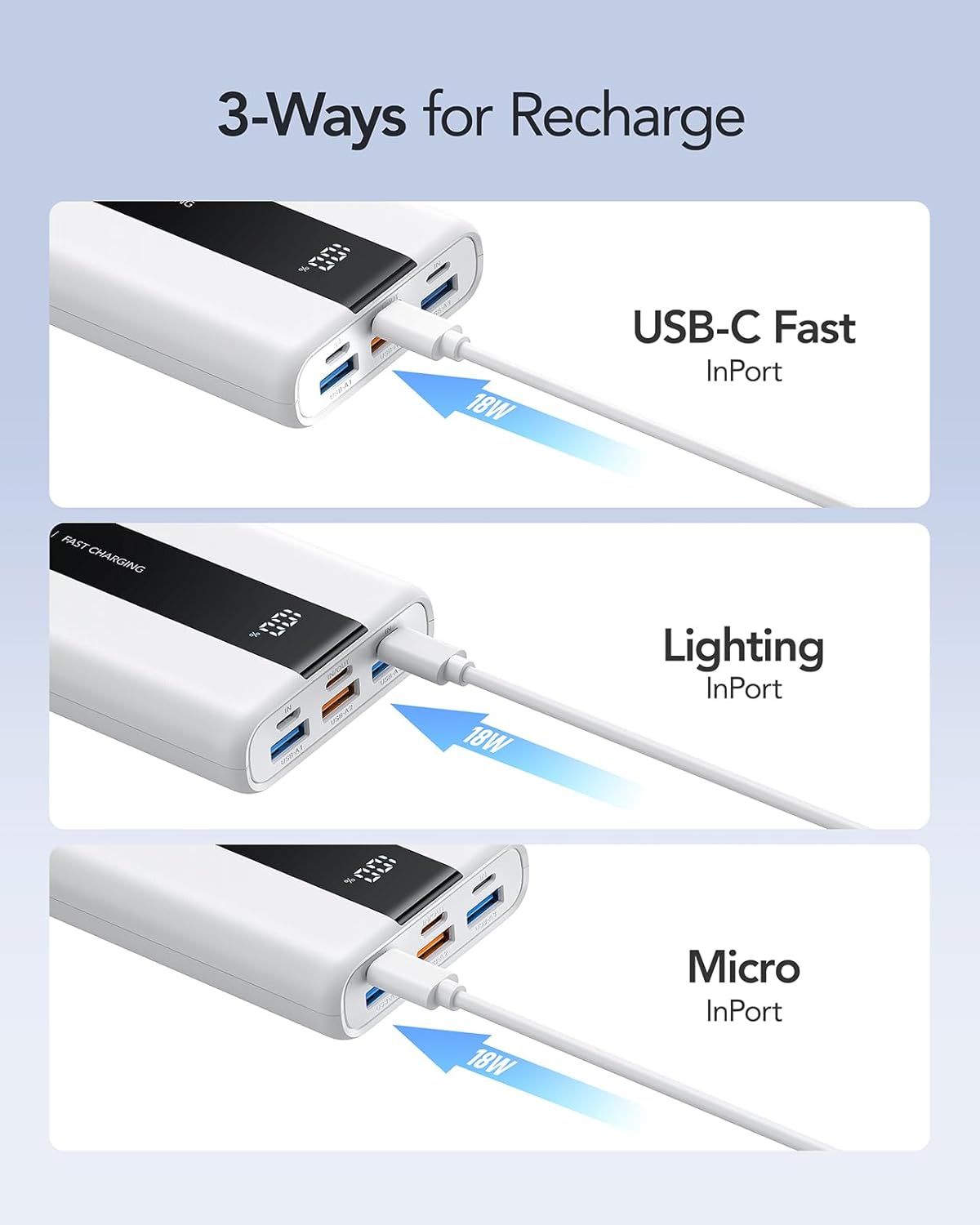✅ 【As much as 6 Ports】The exterior battery pack with 3 Inputs & 4 Outputs (3 IN: Micro/USB C/iPhone, 4 OUT: USB C/USB A),you may cost 4 gadgets concurrently, 20000mAh energy financial institution can meet a lot of the charging wants of every day life.