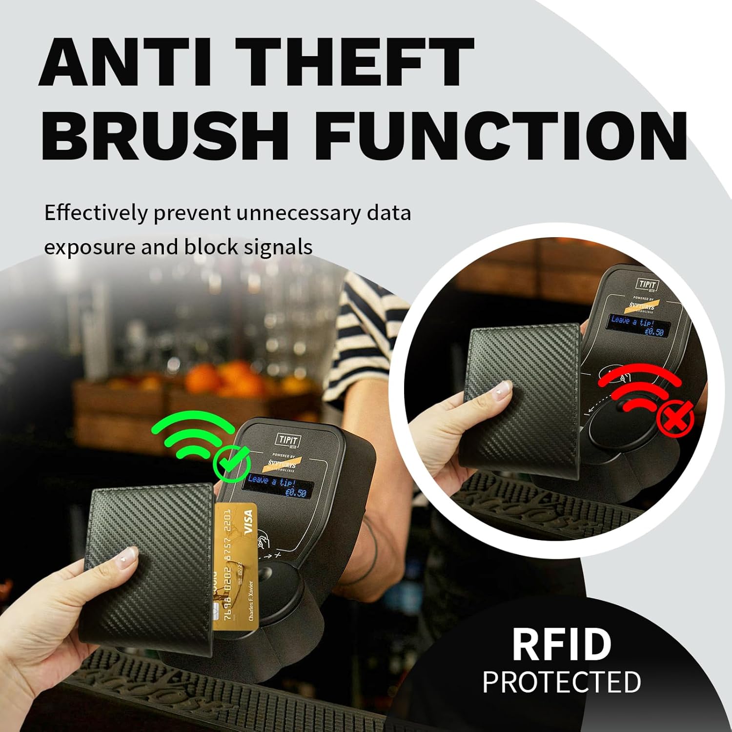 Elevate your on a regular basis carry with our RFID-blocking mens pockets, mixing cutting-edge safety with timeless class. The carbon fiber-reinforced exterior and real leather-based inside present unmatched sturdiness, whereas the slim trifold design (12 x 9.7 x 2 cm) ensures an ideal slot in any pocket. Retailer as much as 8 playing cards, cash within the zippered pocket, and payments in two spacious compartments—all securely organized for fast entry.