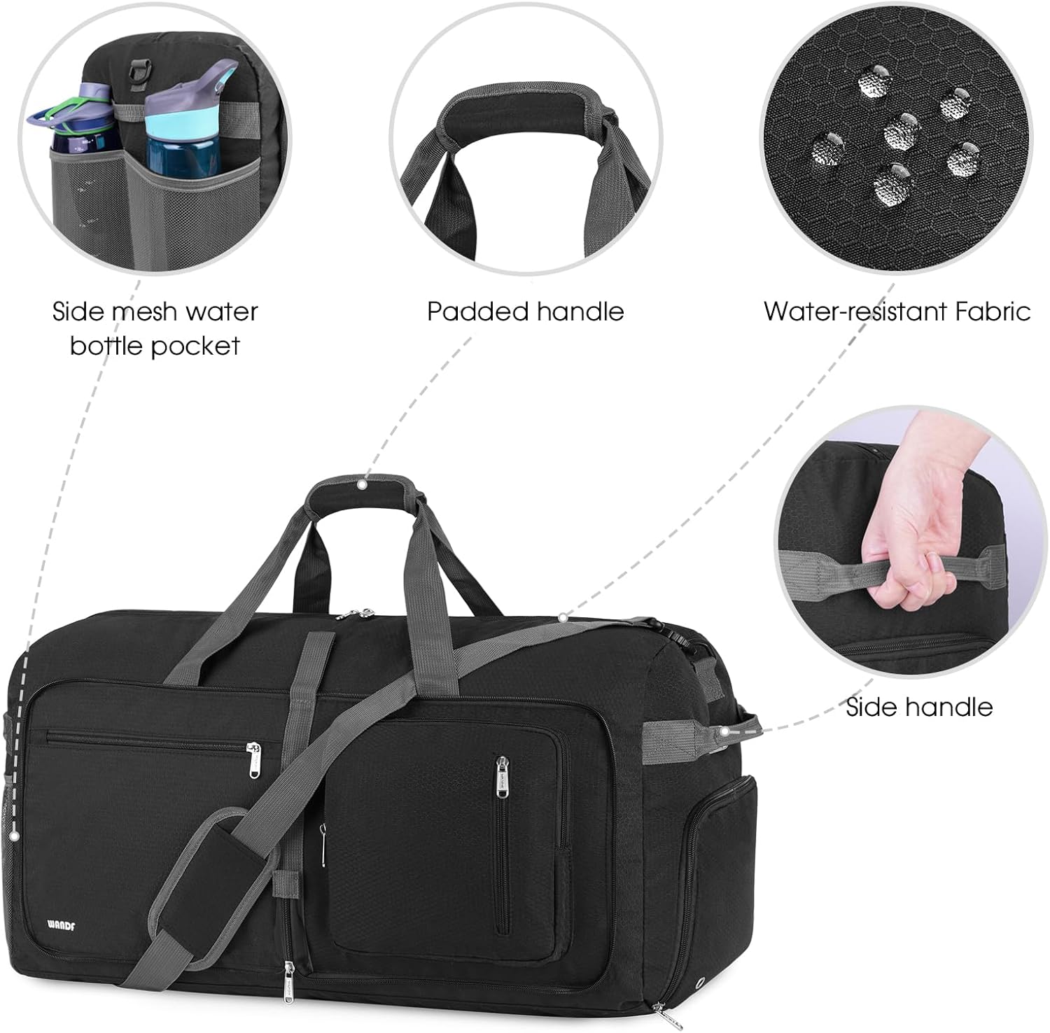 LARGE CAPACITY & FOLDABLE: The WANDF weekender bag measures 65*25.5*33 cm, assembly most enterprise journey necessities. With a roomy 65L area, it may simply match 3-5 days of day by day necessities. The folded measurement is 29*26.7*7.6 cm, making it appropriate to be used as a just-in-case bag in your suitcase.