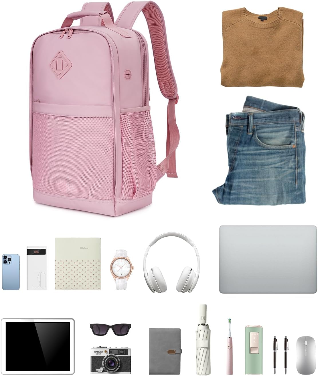 WANDF Travel Laptop Backpack for Women Men, Cabin Bag 45x36x20 for Easyjet Airlines 15.6 Inch Laptop Backpack with USB Charging Port