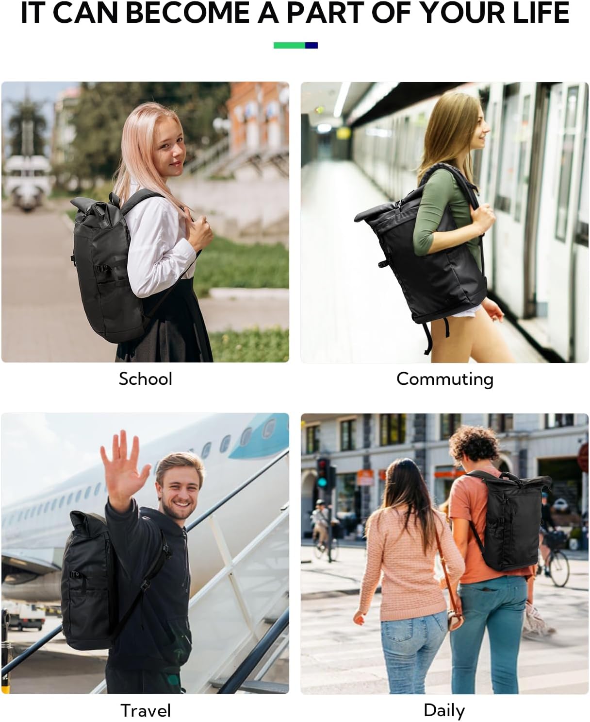 Expandable Capability: The dimension of the rolltop laptop computer backpack could be 38x27x13cm (roll-top) or 53x27x13cm (expanded). The versatile space for storing (13L to 18L) can maintain books, garments, A4 paper, and laptop computer, assembly your totally different wants for work, college, leisure, using, and weekend journey