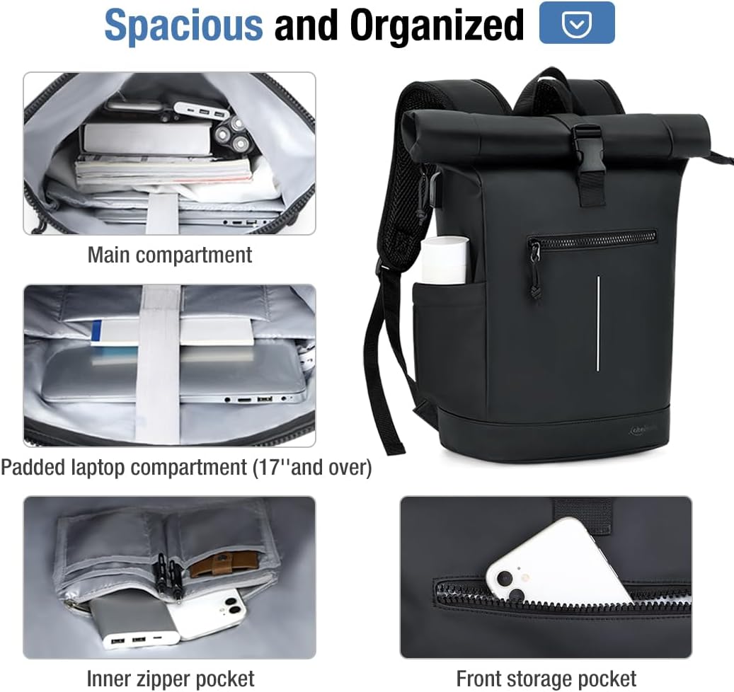 Expandable Capability: Designed to adapt to your wants, the adjustable roll-top expands from 24L (45×30×18 cm) to 30L (60×30×18 cm), providing you with additional room for all of your work, college, or journey necessities