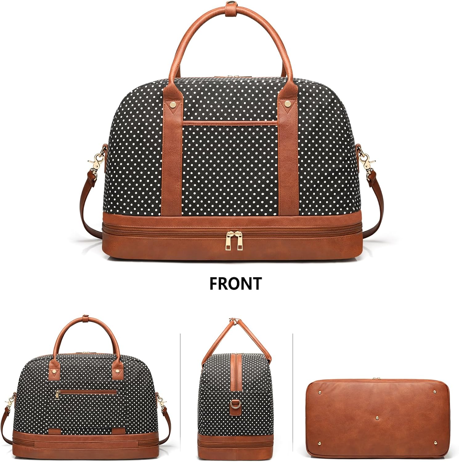 Massive Capability In a single day Bag:With a complete of 6 pockets and a big compartment, the in a single day bag spacious inside that may maintain your garments, footwear, beauty bag, health club garments, and even your laptop computer bag and equipment. Within the entrance of the ladies journey baggage, there’s a pocket for simple entry electronics or journey supplies.