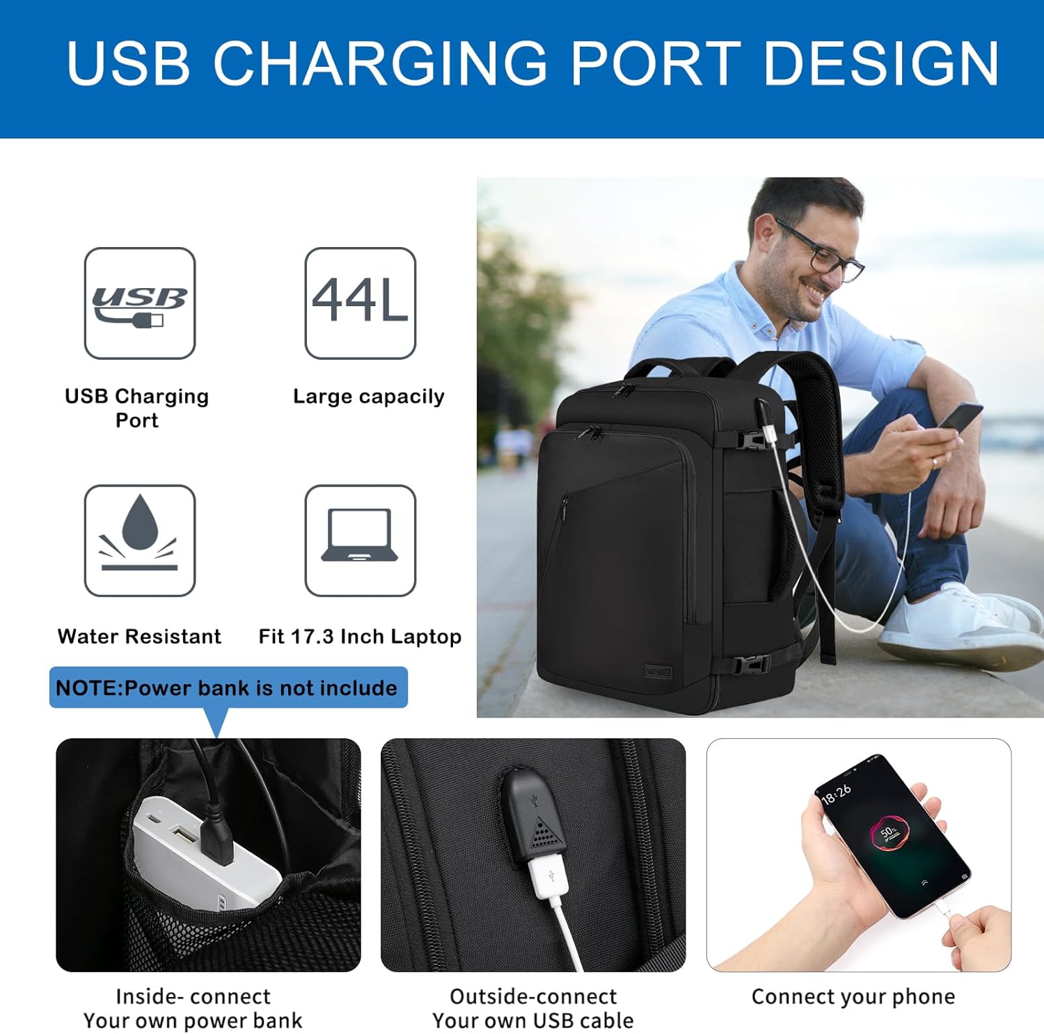 USB CHARGING PORT & ANTI THEFT BACK POCKET & SIDE COMPRESSION STRAPS – With inbuilt USB charging cable,the hand baggage bag with usb port provides you a extra handy solution to cost your cellphone whereas strolling.Please famous that this backpack would not embrace the facility financial institution itself, usb charging port solely provides an easy accessibility to cost.A hidden zipper pocket is designed on the again .With aspect compression straps on the each aspect are useful for cinching down the bag
