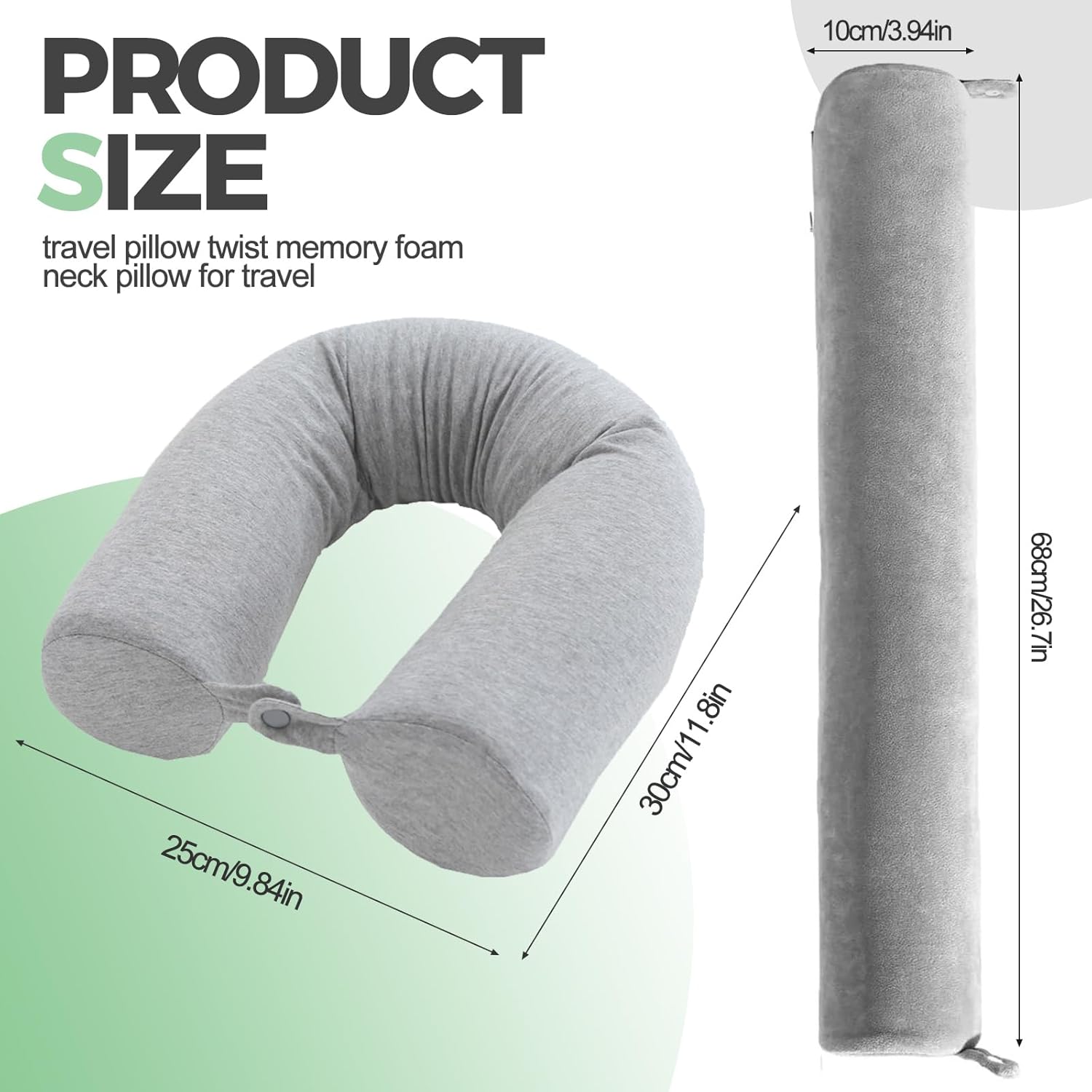 WHENZOO Travel Pillow, 68 * 10cm Twist Memory Foam Neck Pillow, Adjustable, Bendable Roll Pillow used for Neck, Chin, Waist and Leg Support, for Home Travel, Airplanes, Buses, Trains,