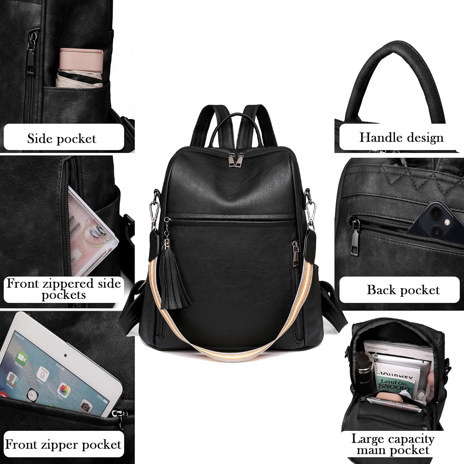 Women’s Fashion Backpacks,Waterproof PU Leather Ruckpack for Ladies,Travel Rucksack,Multi-Pocket Purse Handbag Daypack